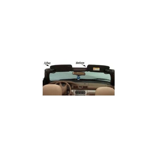 Cover those ugly yellow informational stickers with these black sunvisor solution covers. They are the correct black material to match your sunvisor. These are die cut for uniformity and apply with simple peel and stick application. Fabric comes with double sided adhesive already applied for simple installation.