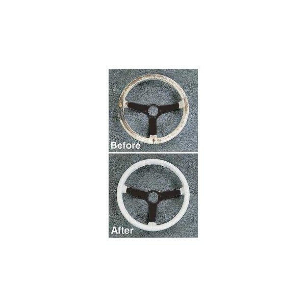 Steering wheels are stripped, refinished and rewrapped with new leather, padding and stitching. Please add a core charge of $90.00, returned when your recoverable steering wheel core is received. Cores must be the same as the wheel ordered. Specify color.