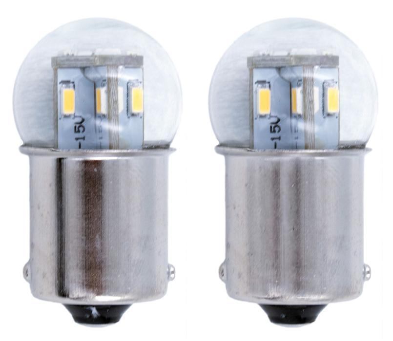 Direct fit. No Modifications required. OE look, 3000K. For drivers who want the benefits of LED, but the look of OE incandescent bulbs. Significantly reduced power consumption than OE or halogen. For enhanced red color when used for tail lights, brake lights, rear turn signals, order 19131. Optimized for 6-volt systems. Lifetime warranty. The last bulbs you will ever buy!
