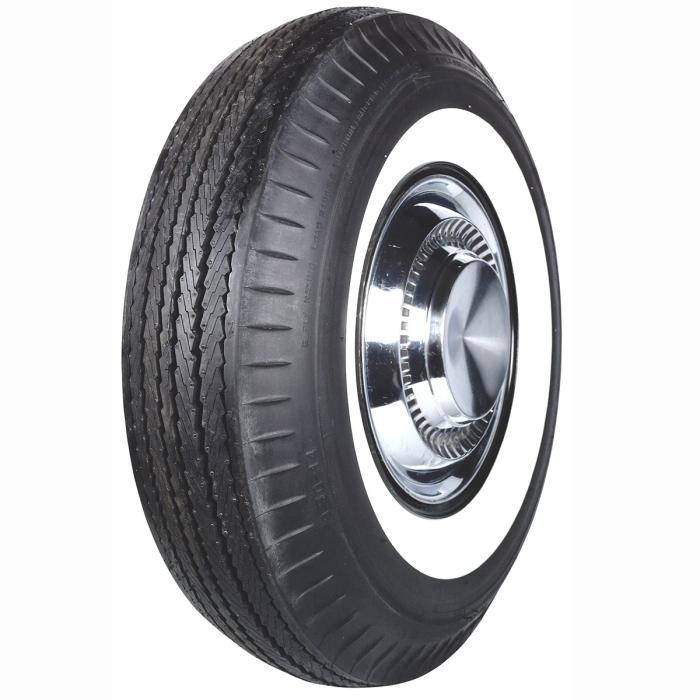 This product features a genuine wide whitewall sidewall style. This means that the bright white rubber is added directly to the tire sidewall during initial construction of the carcass, resulting in a truly integrated, high-quality product after vulcanization. Wide whitewall tires were a very popular choice from the 1930's through the end of the 1950's, and were eventually phased out of mainstream production by 1962. Originally, wide whitewall tires featured a bias ply construction, Coker Tire offers these tires in both original style bias ply and modern radial construction.