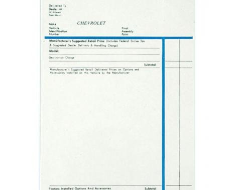 Corvette Window Sticker, 1966-1968
