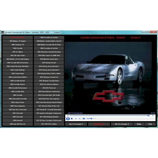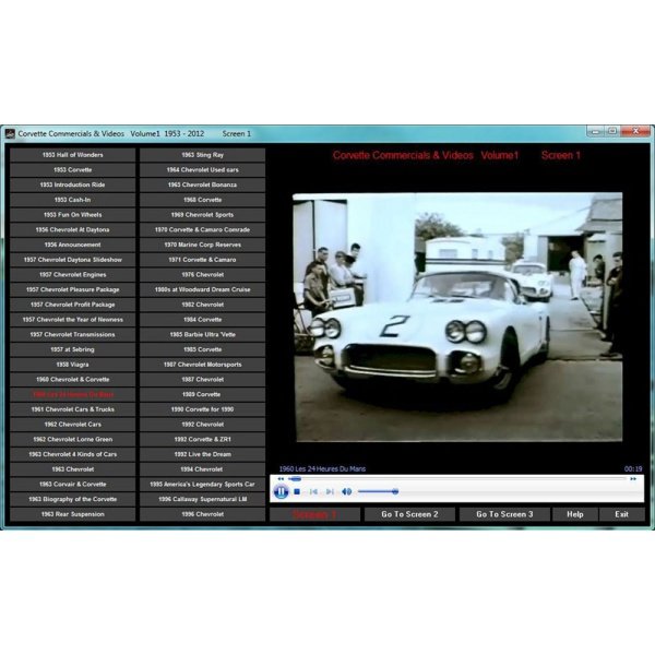 Corvette Commercials and Videos 1953-2012 is a DVD-ROM collection of 150 TV commercials and marketing videos produced by Chevrolet to market the Corvette line to the world.Reminisce the style and hype of the automobile advertising industry from the glory days of cars. See the early Jam Handy marketing films and the first videos of the Corvette presented by Dave Garroway in the "Hall of Wonders" film. Then follow the evolution of America's favorite sports car right on up to the incredible 2012 ZR1 & Z06 super cars. There all here as well as Lorne Green and the other Bonanza stars hyping the "New" Chevrolets and the Vette. This fantastic collection will entertain you for hours.
