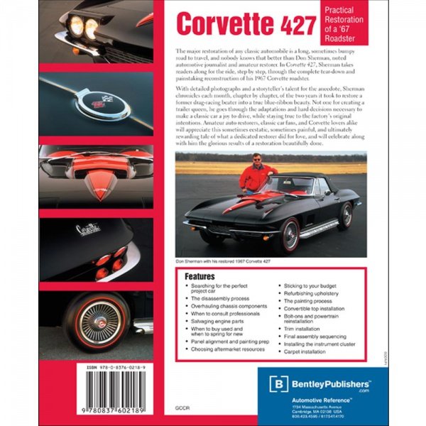 Corvette 427 Practical Restoration of a 1967 Roadster is ideal for anyone interested in learning what really goes into classic auto restoration. The 1967 427 Corvette roadster is a classic sportscar and highly sought after by collectors and enthusiasts. Don Sherman is a well-known and well-respected automotive writer. Corvette 427 Practical Restoration of a 1967 Roadster brings together these two veterans in a unique book.