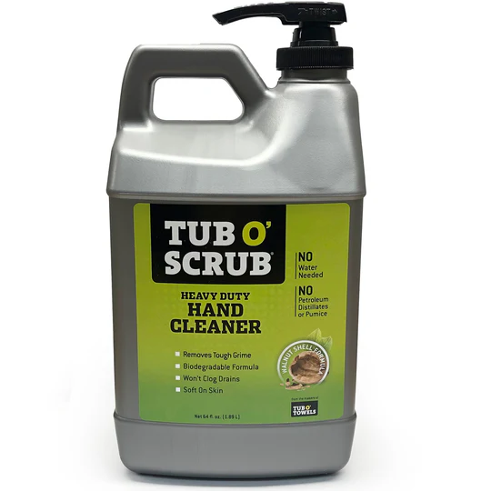 Tackle the toughest messes with Tub O’ Scrub waterless hand cleaner for grease and so much more. Our unique bio-degradable formula is great for hard working hands. Auto mechanics, painters, oil-field workers, contractors, gardeners and do-it-yourselfers love our product. It quickly and easily removes grease, oil, tar, ink, adhesives, epoxies, paint and other tough grime with or without water. Tub O’ Scrub hand degreaser cleaner is pumice-free and will not block drains or septic tank systems like other pumice-based cleaners. Tub O’ Scrub deep cleans while leaving your hands soft and moisturized after use.