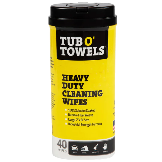 Industrial-strength formula removes grease, tar, ink, paint and many other tough messes on hands and most surfaces. For the broadest range of heavy duty cleaning wipe power with a soft touch on human hands, you want Tub O’ Towels Heavy Duty, the original formula. You are sure to find thousands of uses for these heavy duty wipes from your car, to your bike, boat, home, outdoor spaces and just about anything.
