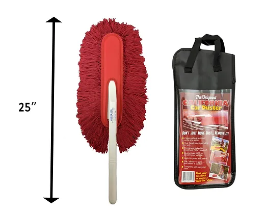 The Original California Car Duster® is the original car duster and still the best car duster! Literally works like magic. The Original California Car Duster utilizes the proven technology of baking a special wax into 100% cotton strands to assure that dust is lifted and removed, not just pushed around. The Original California Car Duster® gives cars the appearance of looking just washed. Will reduce the number of car washings, so you'll save water and other natural resources. The plastic handle, and heavy duty mophead are preferred by car show entrants and enthusiasts across the world. Each California Car Duster includes a carrying case.