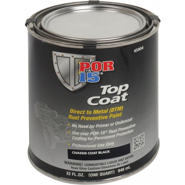 Chassis Coat Black dries to a satiny semi-gloss that is correct for most 1950's and newer car and truck frame and suspension pieces. These topcoats are specially formulated to work with POR-15. They are highly flexible, nonporous and extremely scratch and chip resistant, just like POR-15.