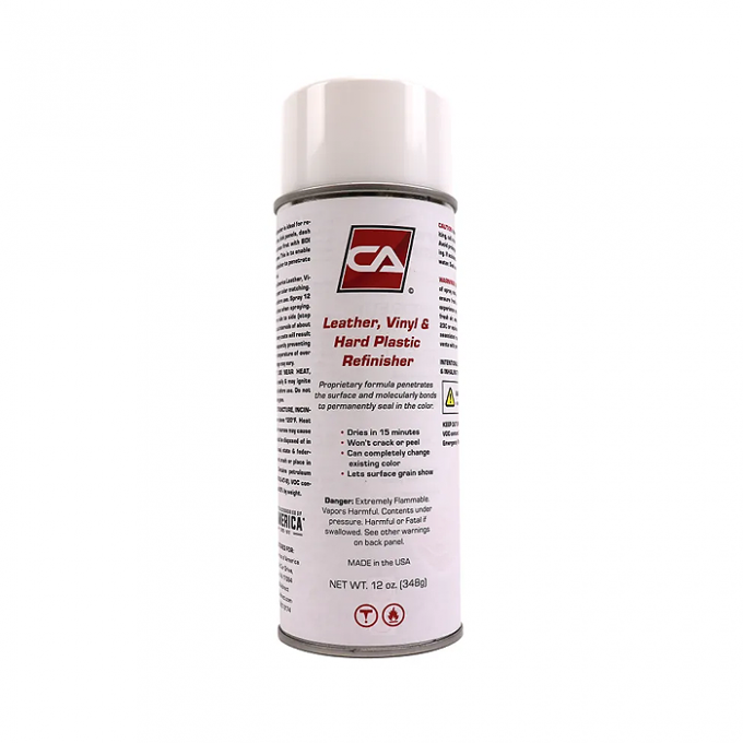 • CA's Interior Dye produces accurate color and solid coverage on leather, vinyl, fiberglass, plastic and metal.
