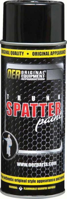 Black and gray spatter paint for use with many '60s and 70's vehicles. This spatter paint is used to paint cover the trunk floor of the vehicle. Each can contain the correct OEM style black and aqua textured spatter paint. After many years, your trunk area may need attention due to water damage or other factors. If you are replacing your trunk pan then spraying the trunk is a must, even if you're installing a trunk mat.