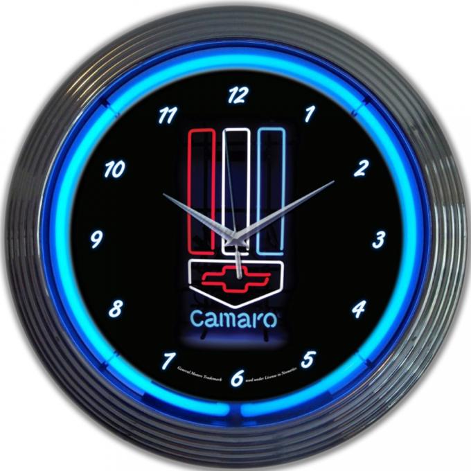 Neonetics Neon Clocks feature a hand blown ring of real glass neon, generating 25 watts of light. The neon clocks have glass faces and feature chrome finished, multi-tiered art deco styles rims. This clock features a chrome rim with a single ring of blue neon. The quartz movement clock operates on one AA battery (not included). The neon light is powered by an AC adapter (included) that plugs directly into a wall outlet. Give your home the fabulous glow of real neon! Please note: The image on the clock face is a photograph of a neon sign, not real lighted-up neon. The center picture on the clock does not light up. The only real neon you will receive is the single circular ring of neon around the clock face itself.