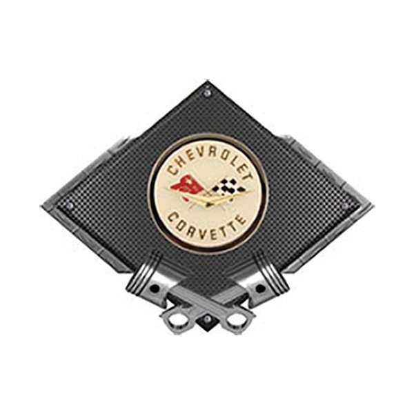 Corvette C1 1958-1960 Emblem Metal Sign, Black Carbon Fiber, Crossed Pistons, 25" X 19":