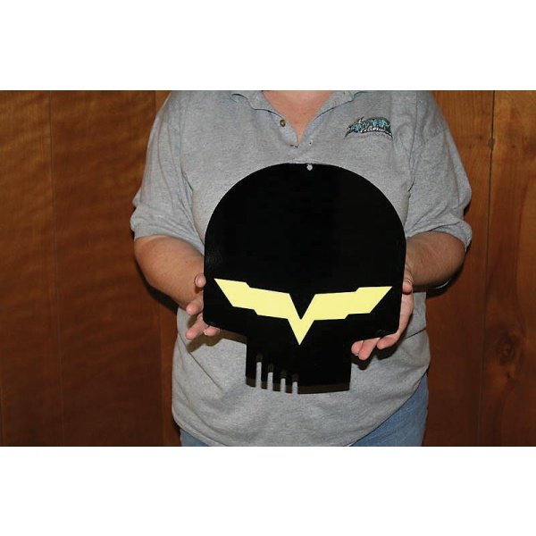 Corvette Jake Metal Sign, Black Head Skull, 12" X 10":