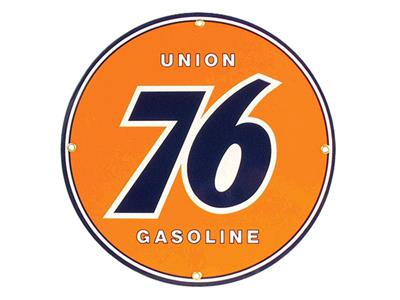 Celebrate the history and culture of the Corvette lifestyle with this Union 76 Gas Station porcelain enamel sign. Steel base and brass grommets for hanging in your home or garage. Made in the USA.