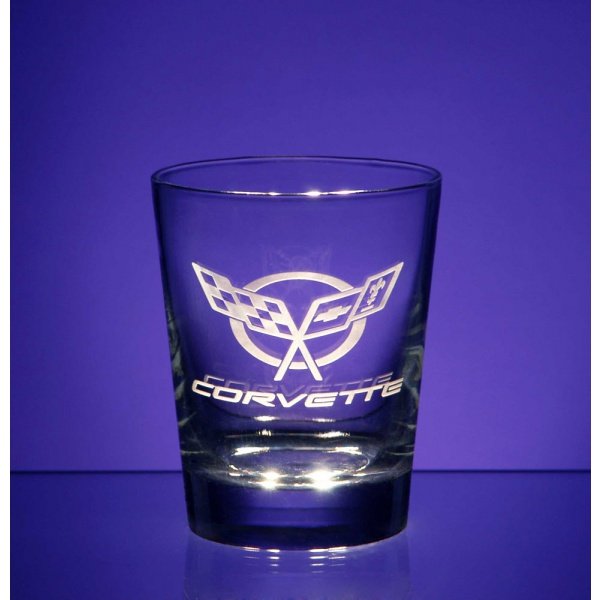 Corvette Glass, Heavy Base Double Old Fashioned, Set Of Four, 13 Ounce, 1953-2013 Corvette Designs | Corvette Glass, 13 Ounce Heavy Base Double Old Fashioned, Set Of Four, 1973-1974 Crossed Flags: