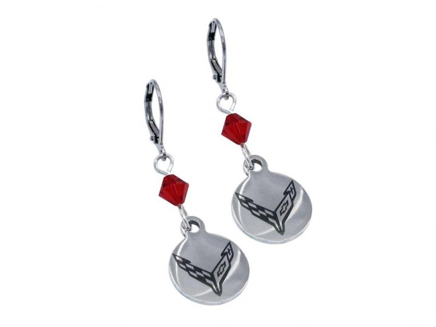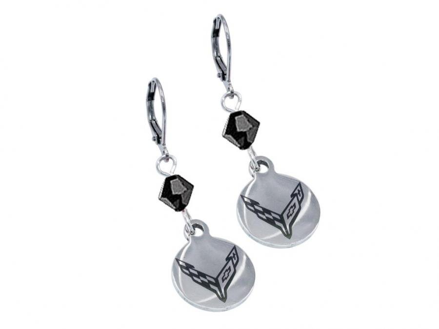Reknowned crystals enhance the sleek beauty of these C8 emblem earrings. Just the right length to go from a day at the track to a night on the town. With four color options, you can accent any outfit with Corvette style!