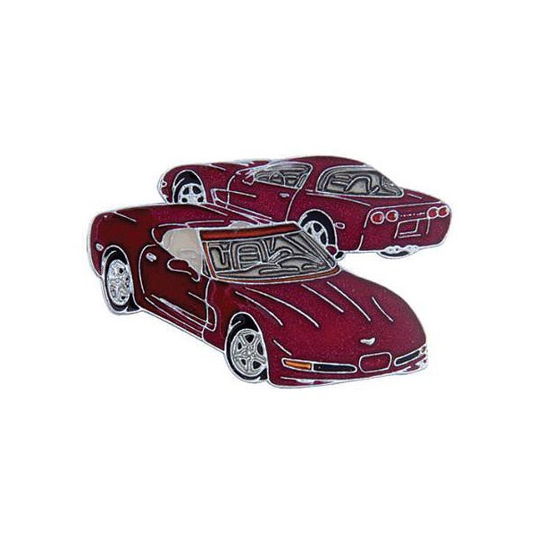This 50th Anniversary Corvette Lapel Pin shows both the front and rear view of the 50th Anniversary Corvette! Two beautiful Ruby Red Anniversary Corvettes face opposite directions on a single pin featuring great attention to detail that shows the fine lines of these Corvettes. It's America's Sports Car at it's best. Makes a great gift.