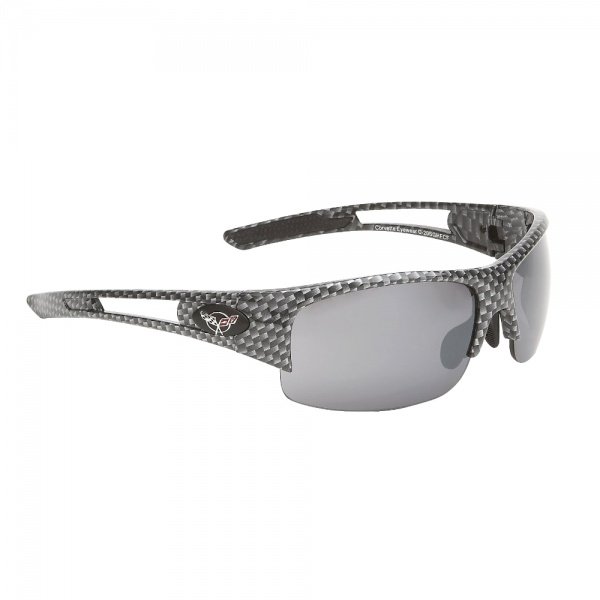 Corvette owners want eyewear as distinctive as the Corvette they drive. If you've gone to an optical center, then you know how frustrating it is to spend your valuable time looking for just the right eyewear. You're looking for eyewear that makes a statement about who you are and what your passion really is. After searching, you've found nothing suitable! The C5 logo has been incorporated into this super slick wrap around 8 base curve hydro carbon fiber rimless frame. The frame features include optical quality and Rx capable TR90 frames with premium silicone temple pads as well as adjustable nose pads. The non-prescription smoke flash mirror lenses are polycarbonate which offers super scratch resistance, clarity, and protection from both UV and AV rays. The frame size is 68-17-125. Included with this sunglass is a micro fiber carrying bag with Corvette script.