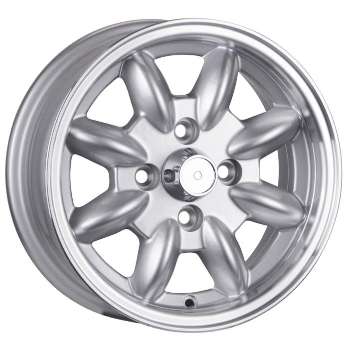 With a size of 13x5.5 inches and a four lug bolt pattern of 4x101.6mm, this Minilite Style Wheel fits thousands of classic sports car applications. Direct fitments include 1953 to 1968 Sunbeam Alpine, 1961 and 1962 Austin Healey Sprite and many more European sports car. The +25mm offset also includes fitments like Morris, Mini, Vauxhall, MG Midget, Jensen Healey, Singer and many more. The wheels feature a one-piece cast aluminum construction with a beautiful silver finish with diamond cut machined lip.