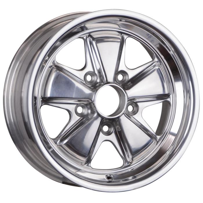 This Fuchs Style Wheel offers direct fitment for vintage Porsche 911 SC, 911 Carrera, 924 Carrera GT, and 911 Turbo ranging from 1972 through 1989. The 16x9 inch sizing and +10.6mm offset fits nicely in the stock wheel wells. The bolt pattern is 5x130mm. The wheel features a one piece cast aluminum construction and it features a fully polished finish.