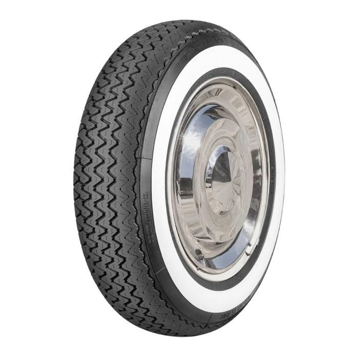 This product features a genuine narrow whitewall sidewall style. This means that the bright white rubber is added directly to the tire sidewall during initial construction of the carcass, resulting in a truly integrated, high-quality product after vulcanization. When we reference "narrow whitewall" tires, we typically mean a whitewall that measures less than two inches, but it can also mean a whitewall that does not reach all the way into the bead. Narrow whitewall tires are popular for many cars built in 1960's all the way into the 1990's.