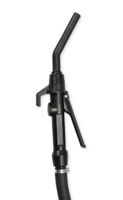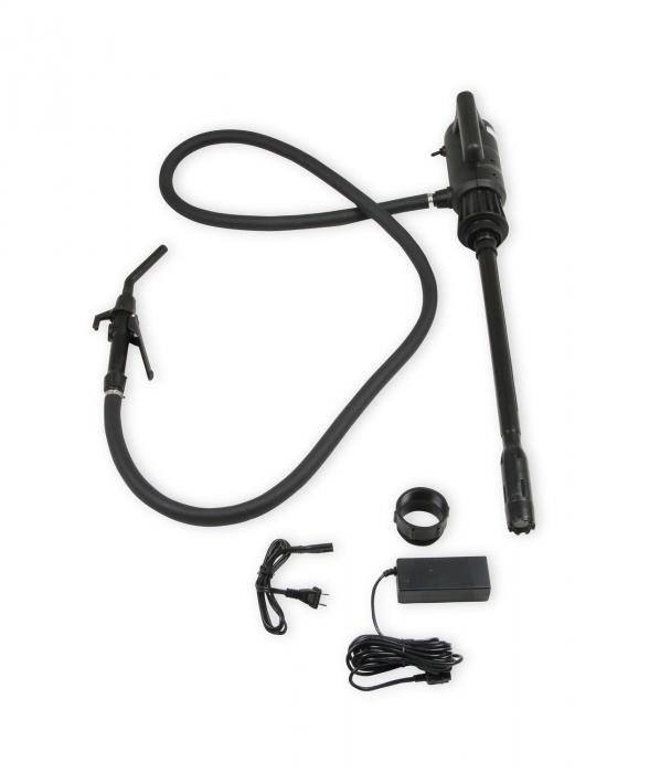 This pump eliminates the need for hand cranks. It's electrically powered so just plug it into any 120V outlet, or you can use the bonus harness with clips to use with a 12V battery. The suction pipe telescopes from 33.5 to 49 inches, allowing one pump to be used on metal or plastic drums from 15 to 55 gallons. It'll even fit some IBC (intermediate bulk container) totes. This pump is compatible with ethanol, methanol, DEF (diesel exhaust fluid or AdBlue), non-chlorinated brake cleaner, and water (not drinking water). So it's not just for getting alcohol fuels into the racecar. Use it at the shop, on the farm, in the yard. It works pretty quickly - up to 4.2 gallons (16 liters) per minute. The discharge hose is 6-1/2 feet long and it has a full control nozzle with easy on/off so it's easy to use. Instructions are included.