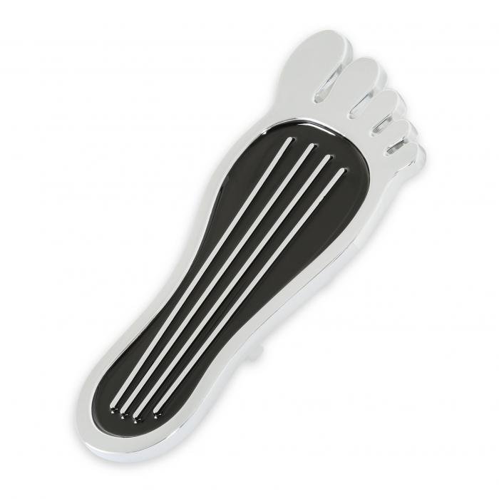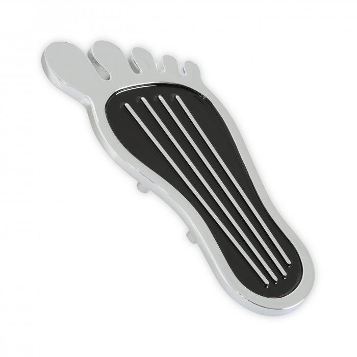 Add some fun to your car with this barefoot style gas pedal pad. Deep tread, long wearing pad with contrasting chrome grid. No drilling or alterations necessary.