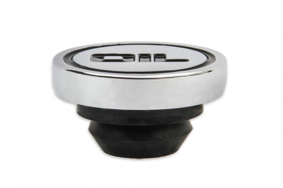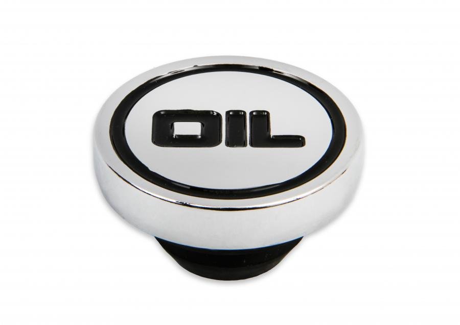 Chrome plated push in style oil filler cap plug. Fits valve covers with 1.22 inch diameter hole. 5/8 inch tall by 2-3/16 inch diameter. Fits all original equipment or aftermarket valve covers with 1-1/4 inch diameter hole.
