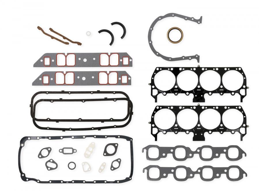 Chevy Overhaul Gasket Kit - 396/454/502 1965-'90 Designed for maximum sealing for bi-metal (cast iron block/aluminum cylinder head) engines used in professional race and high performance street engines. Multi-Layered Stainless Steel (MLS) cylinder head gaskets, Ultra Seal III intake manifold, timing cover, water pump, and fuel pump gaskets. Molded rubber with steel carrier valve cover gaskets. Remainder of gaskets and seals are high quality Mr. Gasket. For original equipment replacement, high performance street, drag race and oval track.