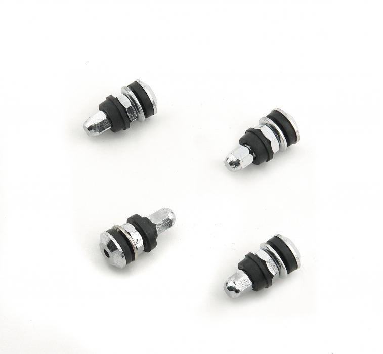 Chrome plated. Fits .453 inch valve stem hole. Stock Length. Two per set.