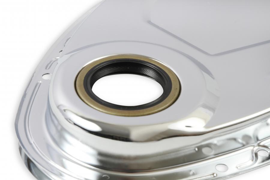 TIMING COVER; CHROME PLATED; USE W/OEM TIMING CHAIN; COMPLETE KIT; DOUBLE ROLLER TYPE CHAIN/GEAR DRIVES NEED TO CHECK CLEARANCE; | |