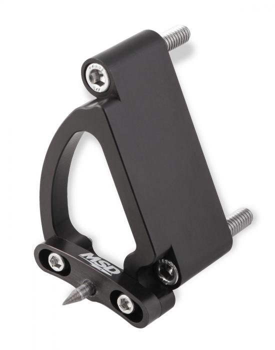 Complete your MSD ignition system with a precision adjustable timing pointer that is CNC-machined from 6061-T6 billet aluminum. Each pointer is fully machine-lightened for a great looking addition to any engine. The main body and adjustment assembly are black anodized for long-lasting corrosion protection. They are built to direct fit each application and various part numbers are available to fit multiple size balancers. MSD Timing Pointers are designed to work on Small Block Chevy, Big Block Chevy, and Small Block Ford engines and have a 4-degree range of movement for finding that precise timing location. Stainless steel hardware is included with each timing pointer.