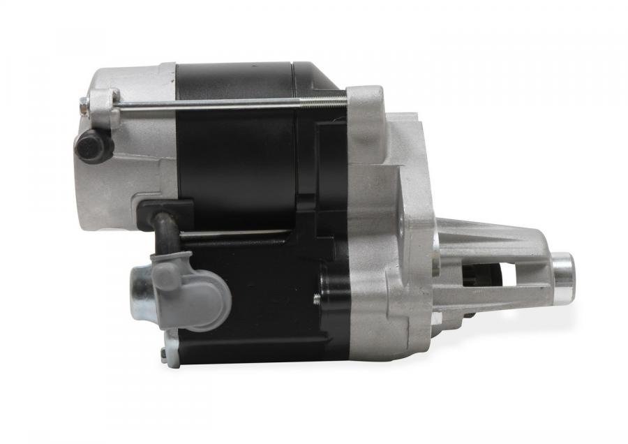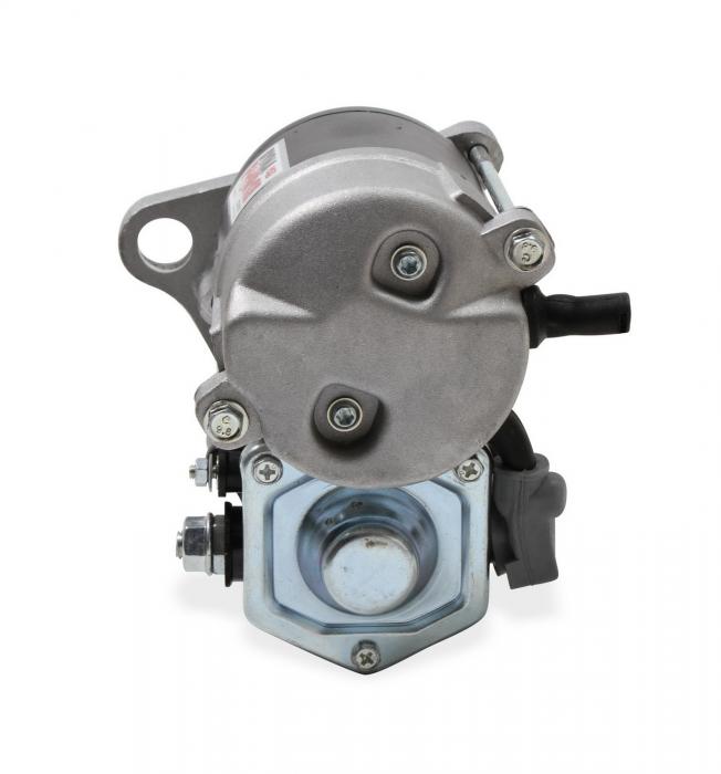 MSD's DynaForce Starters feature all new components beginning with a three horsepower motor. This power is used to crank over the reduced 4.4:1 gear set to deliver great torque to the engine's ring gear to get the engine turning. The compact housing clears most headers and oil pans, but just in case, we made the billet mount so it can be clocked in different positions to help in tight applications. The assembly is powder coated black and will stay looking good, even though it's underneath your car.