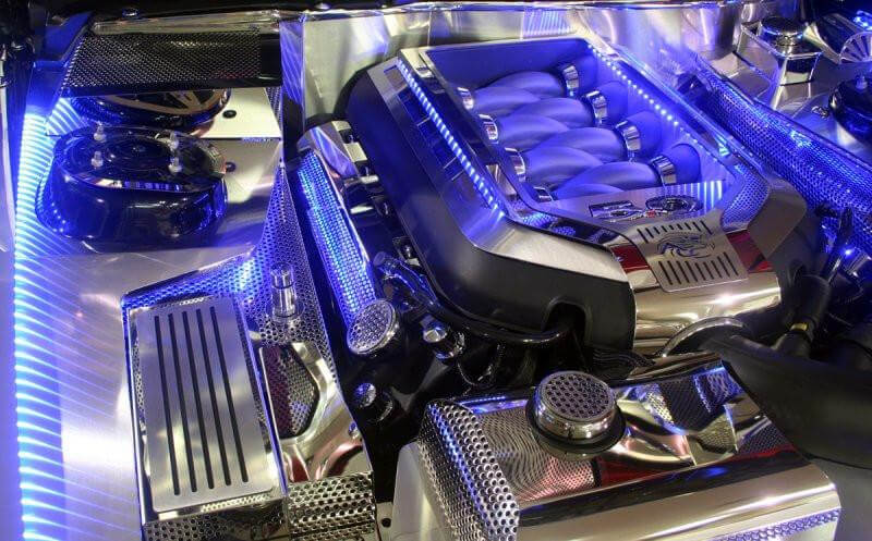 Our product line specialty extends from the interior to the exterior of your ride and into the engine bay. We also create state of the art vinyl decals and can create one of a kind custom etched windows and laser etched stainless steel products.