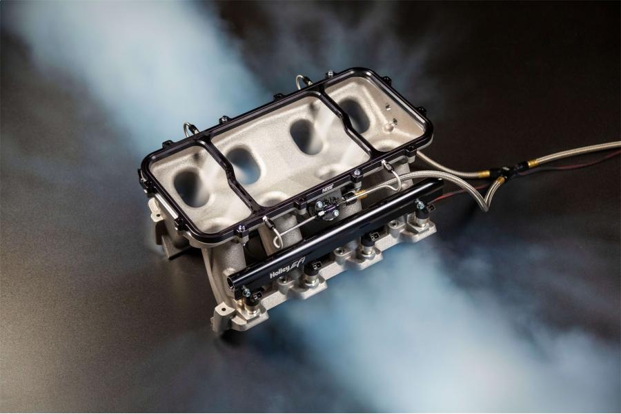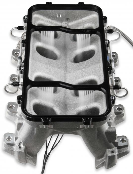 • This dry single stage plate sandwiches between the bottom base and top plate on Holley Hi-Ram intake manifolds
