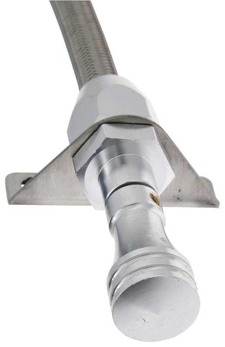 You will have flexibility with this transmission dipstick designed for use with GM Powerglide transmissions. This firewall mount dipstick features a flexible stainless steel braided cable, aluminum knob, and a fill tube.
