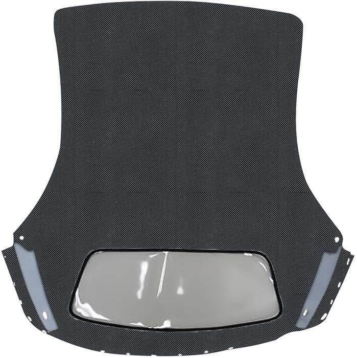 This convertible is crafted from Pinpoint vinyl, a heavy-duty vinyl composite material. It consists of an outer layer of PVC and an inner layer of dyed, 100-percent-cotton sateen. This vinyl design is original to most American cars from the fifties to the nineties. Pinpoint refers to the little dots or pips that you see if you look closely at the vinyl surface.