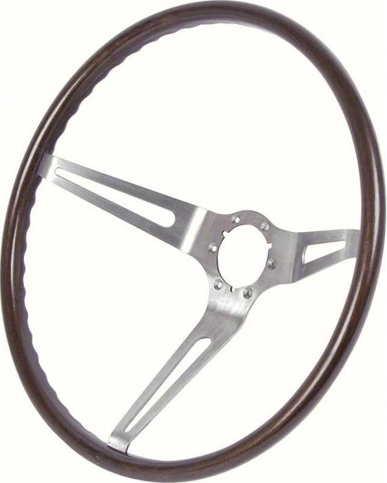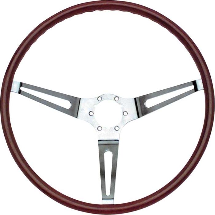 Quality reproduction of the original simulated walnut steering wheel designed for use with 1963-66 Corvette models. This quality reproduction woodgrain wheel is virtually indistinguishable from the original in texture and design. Each wheel features a plastic rim fully wrapped in simulated Walnut featuring correct style brushed spokes as original.