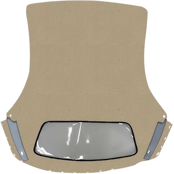This convertible is crafted from Pinpoint vinyl, a heavy-duty vinyl composite material. It consists of an outer layer of PVC and an inner layer of dyed, 100-percent-cotton sateen. This vinyl design is original to most American cars from the fifties to the nineties. Pinpoint refers to the little dots or pips that you see if you look closely at the vinyl surface.