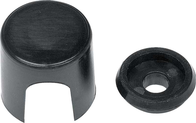 Reproduction alternator wire terminal cap and retainer for various 1964-75 Buick, Chevrolet, Oldsmobile, and Pontiac vehicles equipped with a GM threaded-post type alternator. The retainer attaches behind the alternator post lead and has the clip edge to accept the cap. These protective caps are manufactured in injected molded ABS and retainer is color coded to match the cap. Available in Black.