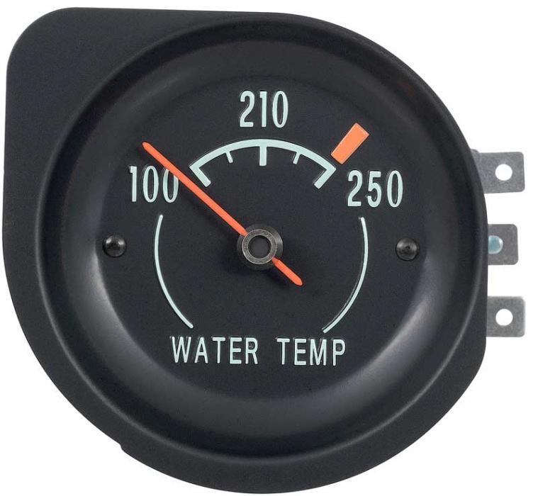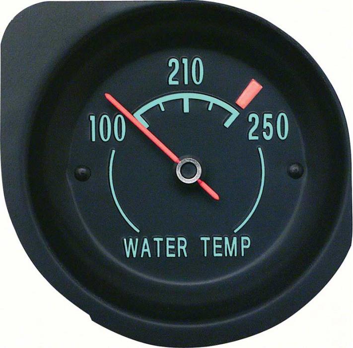 Reproduction of the original instrument cluster temperature gauge designed for use with 1968-71 Chevrolet Corvette models. Each gauge is manufactured to original factory specifications featuring a silk-screened replica of the GM markings in light green used in 1968-71 models. Also includes a correct red needle that matches the existing gauges. Will replace the original non-working gauge exactly.