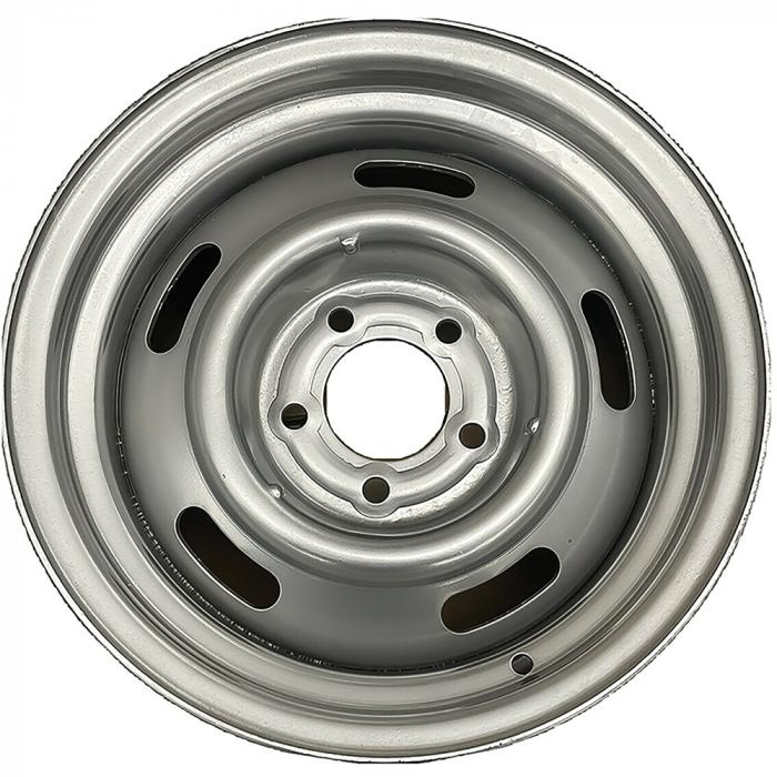 Reproduction of the original style 15" x 7" Rally Wheel for ise with various 1968-81 Chevrolet models. This wheel is manufactured in steel replicating the original in design and appearance. Replace a rusty, pitted or missing Rally wheel with this outstanding new reproduction. Each wheel comes beautifully powder coated in correct original silver color. Center caps, trim rings and lug nuts are not included and sold separately.