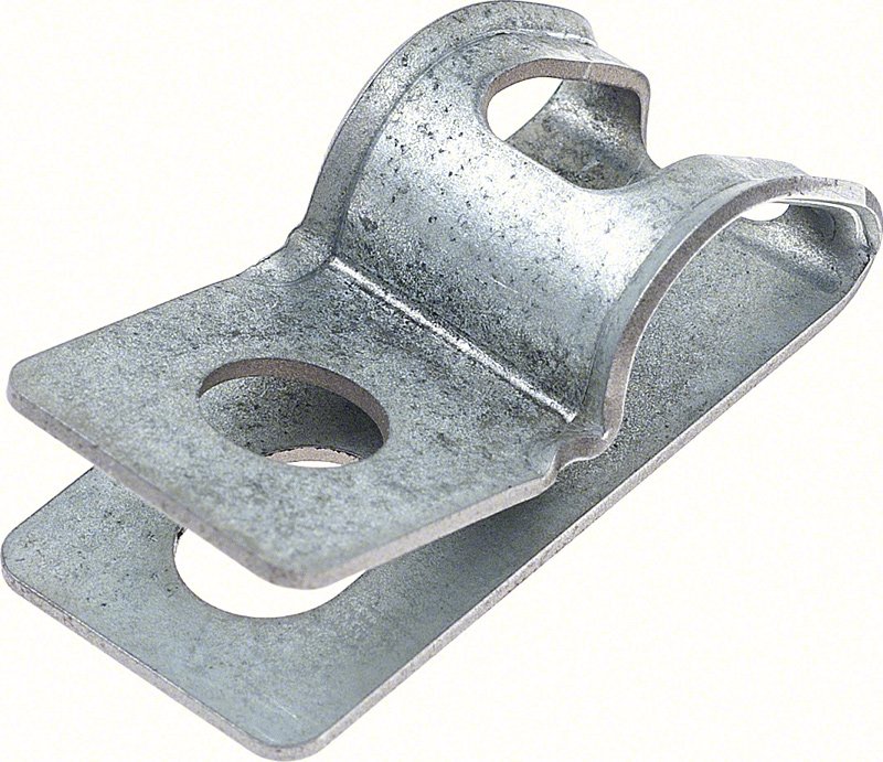 Correct clip for attaching fuel and brake lines to the frame on various GM models. This clip is made of galvanized steel and is designed to accept one 3/8" and one 1/4" steel fuel line or one steel brake line. Bolt hole is 3/8", bolt not included. Replaces OE # 15522163.