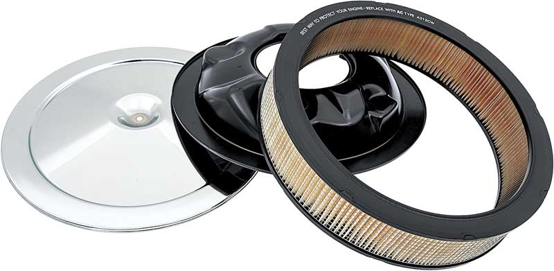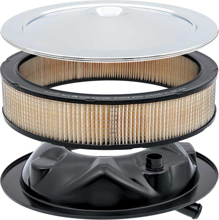 OER® reproduction of the original open element air cleaner assembly as originally installed on a variety of 1970 high performance Chevrolet engines. Each air cleaner assembly includes the base, filter element and a highly-polished chrome lid.