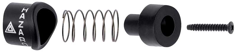 Reproduction hazard knob set found on a wide variety of 1967-05 GM models. Each set includes a knob, release collar, tension spring, and screw. Manufactured in black injection molded ABS, the release collar features the word "Hazard" vertically beside a triangular hazard icon painted in accenting white paint as original. Convenient set includes all part needed for a complete replacement.