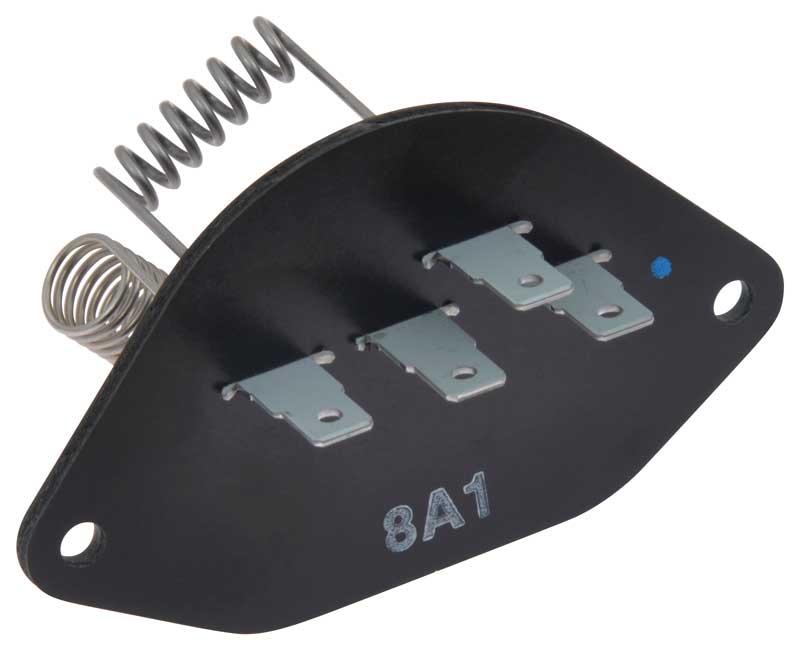 Reproduction heater blower motor resistor for various GM air conditioned models. Each resistor is an exact reproduction of the original GM component designed to fit and function same as the original AC Delco resistor. The blower motor resistor is responsible for controlling the speed of the fan.
