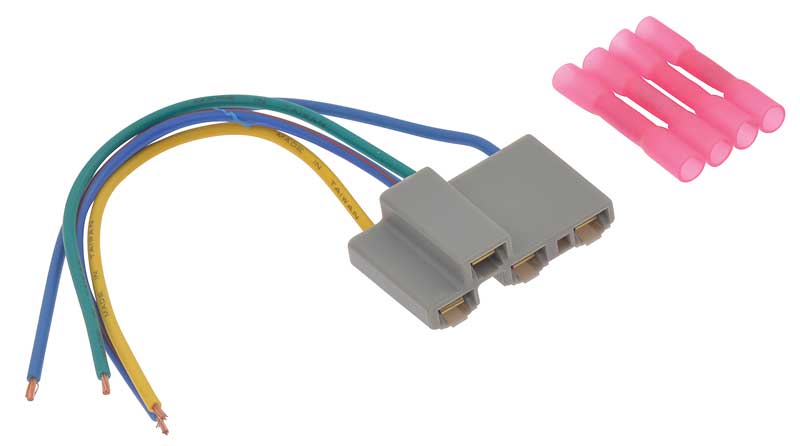 Reproduction of the wire harness/pigtail used with heater blower motor resistor part number 1571968. Includes correct wiring and pigtail replicating the original. For reproduction or original blower motor resistors.