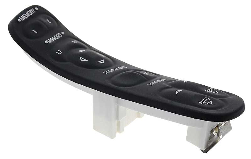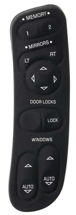 Service replacement style power window and door lock switch assembly for the driver side on 1997-2004 C5 Corvette models. Produced in injection molded plastic, each assembly includes the memory function, mirror controls, door lock switch, and power window switch with an integral bezel for a convenient plug-n-play replacement. May differ slightly cosmetically from the original equipment part, but will fit and function properly.