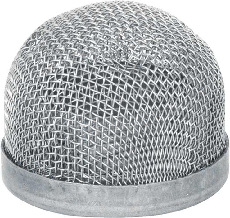 This small domed mesh cap commonly known as the flame arrestor screen is an exact reproduction of the original. This item is usually missing or dented. Installs on the upper edge of the air cleaner tube where it protrudes through the inside of the air cleaner base. Fits a variety of different models depending on engine size.