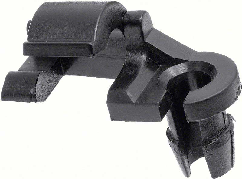 Reproduction of the clip that retains the two inner door lock rods. This nylon clip joins the horizontal rod from the door latch with the verticle rod that the door lock knob screws on to. Sold individually. One required per door. Fits into a 1/4" hole and secures a 5/32" rod. LH offset.