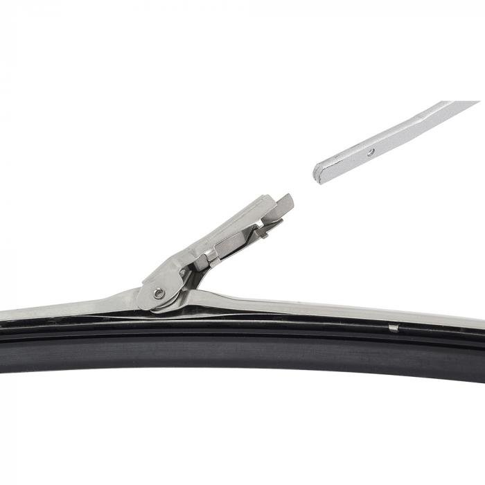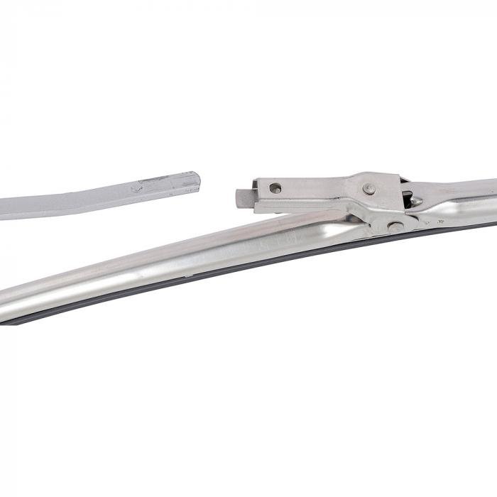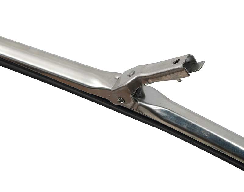 Reproduction 15 inch "TRICO Style # PR-15-2W" wiper blade for a wide variety of classic vehicle models. Each blade features stainless steel construction and is loaded with a period-correct TRICO RF-15 style insert with a stainless steel vertebra and a precision wiping edge produced with a long-life rubber compound. Designed after the Latch-Lock Release TRICO brand blades of the period. Fits wiper arms with "Wide 1/4" Bayonet Style" ends. Low silhouette design resists wind-lift at high speeds. Sold individually.